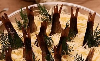 - Se prepară sosul – într-o cratiță se amestecă smântâna, smântâna, sarea și paprika, se bat cu mixerul. Se scoate grătarul din cuptor, se toarnă sosul peste el, se presară cu brânză rasă, se dă din nou la cuptor pentru 20 de minute fără folie până devine auriu.