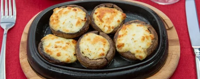 Ciupercile umplute pot fi servite în siguranță la o masă festivă sau la un bufet, au un aspect, un gust și o aromă excelente. Felul de mâncare este foarte ușor de preparat, se umplu capacele ciupercilor cu carne tocată, se presară cu brânză și se dau la cuptor. Această gustare este delicioasă atât caldă, cât și rece.